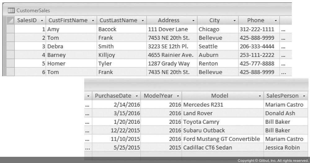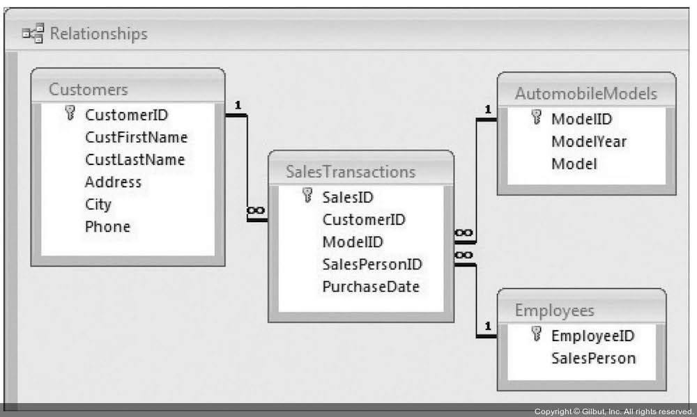 위의 CustomerSales 테이블처럼 한 테이블에 여러 주제의 데이터가 담겨있다면, 로우가 한 개 삭제될 때 제거하려고 하지 않은 데이터를 잃을 수도 있으며 비정상적으로 데이터를 갱신할 때도 있다. 위의 테이블은 아래와 같이 4개의 테이블로 분할할 수 있다.